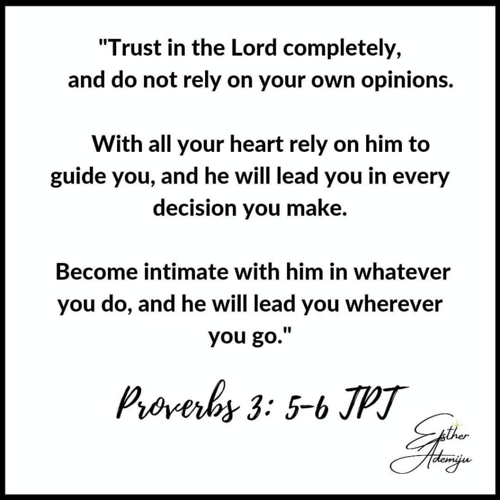 Finally, trust and faith in God is ACTIVE. You don’t trust God and wait on him passively. Put in some work. Faith without works is dead (Read James 2:14-26).